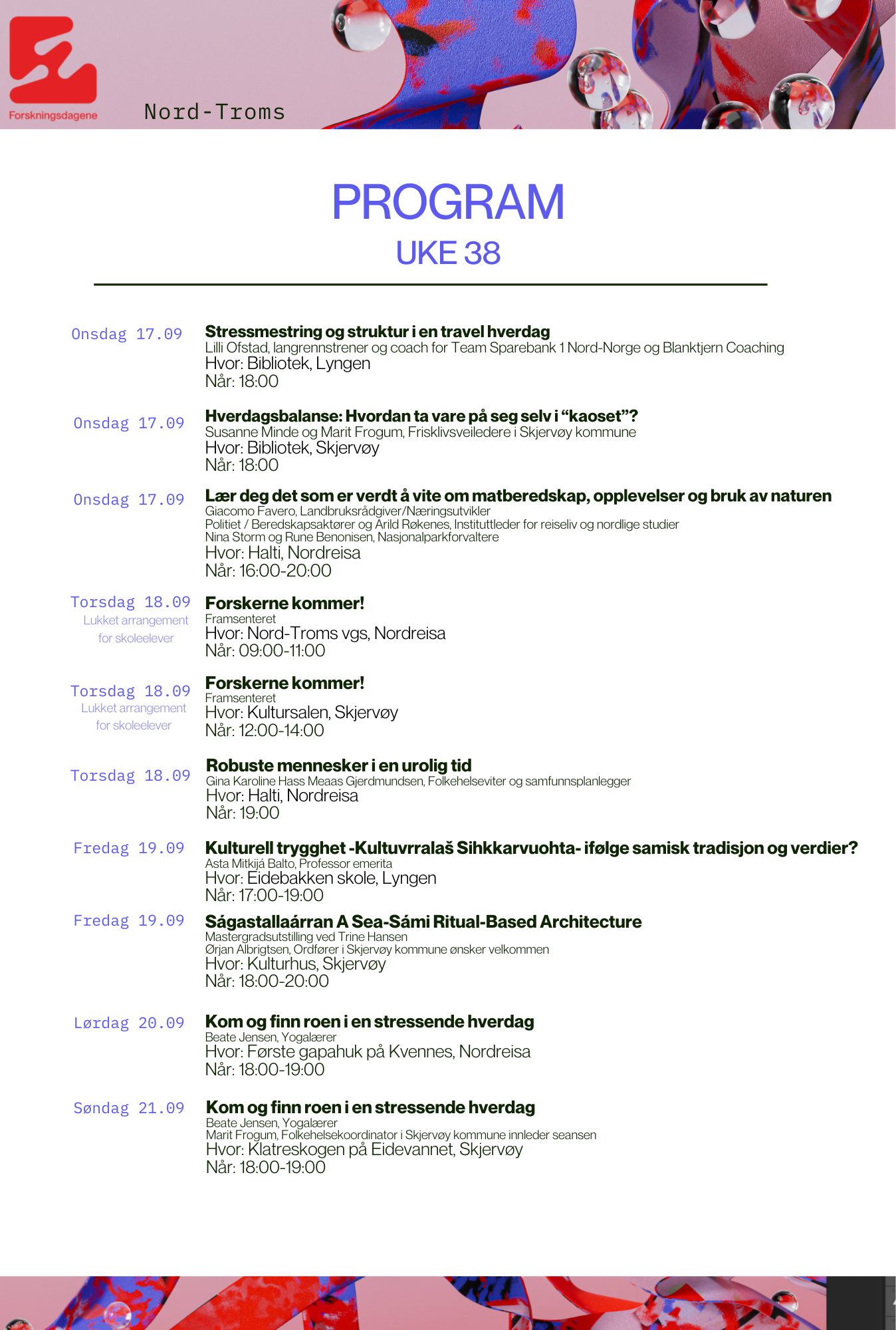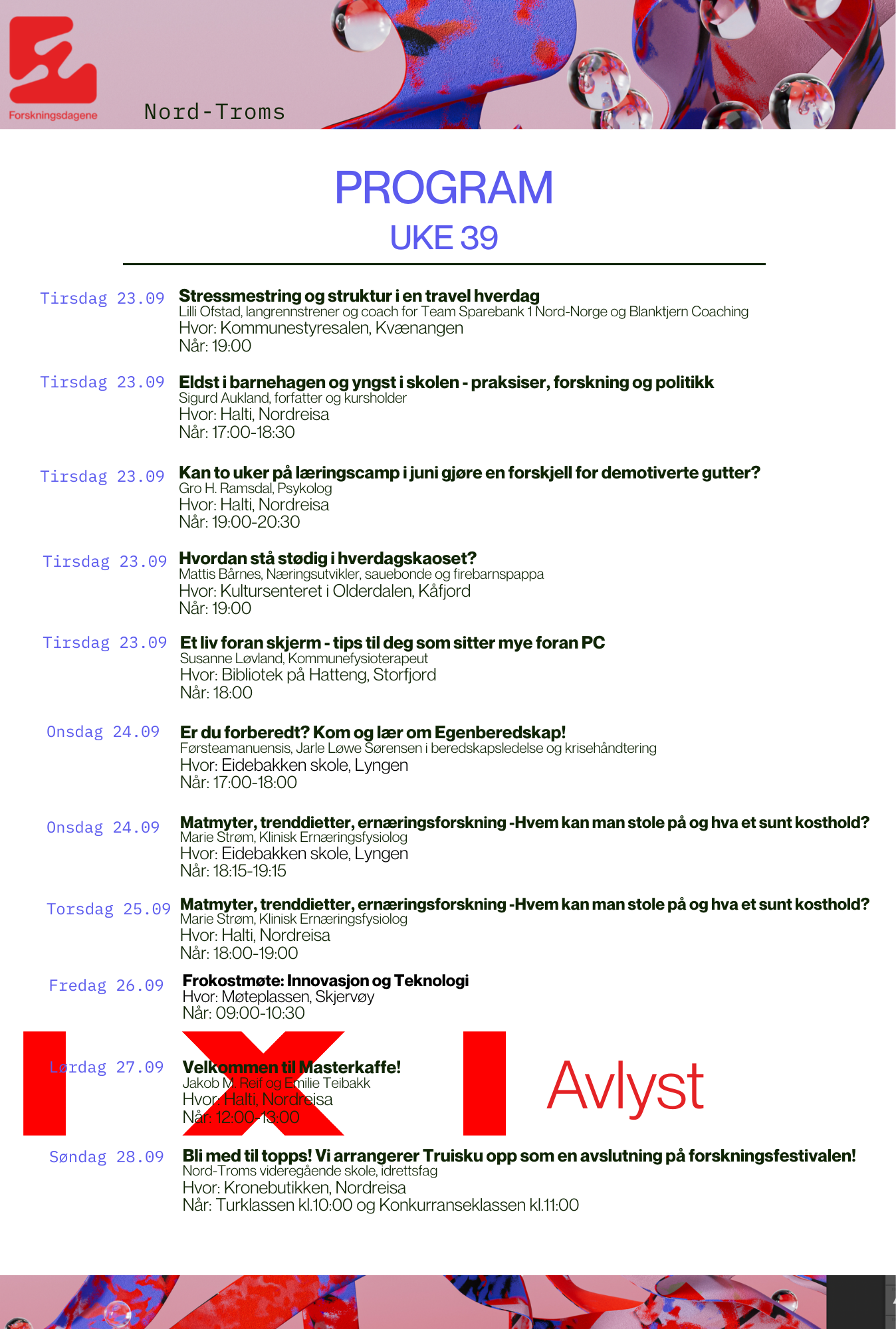 Torsdag 25. og fredag 26. januar 2024 går Yrkes- og utdanningsmessene i Nord-Troms av stabelen, først i Nordreisa og deretter i Nordkjosbotn. – Det er ingen tvil om at dette er en av de viktigste rekrutteringsarenaene for framtidig arbeidskraft i regionen, sier prosjektleder Rakel Lund Fanghol. Yrkes- og Utdanningsmessene i Nord-Troms arrangeres av Halti Næringshage og samarbeidspartnere. Det er en helt unik arena hvor elever fra ungdomsskoler, videregående skoler og voksenopplæringer i regionen blir kjent med næring- og arbeidslivet, samt utdanningsmulighetene i regionen. I 2024 arrangeres Yrkes- og Utdanningsmessene i Nord-Troms torsdag den 25. januar på Storslett og fredag 26. januar i Nordkjosbotn. En av de største utfordringene vi står ovenfor i vår region er mangelen på arbeidskraft og kompetanse. Vi trenger absolutt flere som kan bidra til at næringslivet og kommunene videreutvikles og rigger seg for framtida. Å tilby arenaer hvor unge får møte sine framtidige arbeidsgivere og se karrieremulighetene i nord er vårt samfunnsansvar, sier Rakel Lund Fanghol, prosjektleder for Yrkes- og utdanningsmessene i Nord-Troms. Yrkes- og utdanningsmessene 2024 er finansiert med støtte fra Nord-Troms' kommunene og Balsfjord, men er også avhengig av støtte fra regionalt næringsliv. Lurt å være tidlig ute Påmeldinger fra utdanningsinstitusjoner, opplæringskontor og bedrifter fra regionen har strømmet på den siste tiden. Til messen i Nordreisa inviteres elever fra ungdomskolene, videregående skole og voksenopplæringene i Nordreisa, Kvænangen, Skjervøy og Kåfjord. På messen i Nordkjosbotn deltar elever i ungdomsskolene og videregående skole fra Storfjord, Lyngen og Balsfjord. I 2023 deltok til sammen over 1000 elever og nærmere 100 unike virksomheter. Det er ingen grunn til å tro at det blir færre i 2024. Allerede har over 40 virksomheter meldt seg på og det er så gøy! Påmeldingsfristen for bedrifter er 15.desember, men jeg oppfordrer alle som skal delta å melde seg på så fort man kan. Vi har fremdeles plass begge stedene, men med den interessen som har vært til nå tror jeg det kan bli fullt. Derfor er det lurt å ta kontakt og være tidlig ute, sier Fanghol. Viktig arena Halti Næringshage og samarbeidspartnerne arrangerte Yrkes- og Utdanningsmessen i Nordkjosbotn for aller første gang i 2023 og på nyåret gjentas suksessen. Rektor ved Nordkjosbotn videregående skole, Tor Eriksen, mener at messen er viktig på mange måter. For det første er Yrkes- og utdanningsmessen en avgjørende arena for å skape samarbeid og samhandling mellom næringslivet og oss som utdanningsinstitusjon. Vår rolle er å etter beste evne og fylle kompetansebehovet som næringslivet og det offentlige etterspør. For det andre var interessen og engasjementet i januar enormt både fra næringslivet og skolene som deltok. Det viser at det absolutt er behov for å vise unge hva som skjer i næringslivet og hvor mange muligheter som faktisk finnes. Jeg er veldig takknemlig overfor Halti næringshage som er med å gjøre dette mulig, understreker Eriksen. Hvis man ønsker å lese mer kan man besøke hjemmesiden til Yrkes- og utdanningsmessene i Nord-Troms Ønsker dere mer informasjon om messene, ta kontakt med: Rakel Lund Fanghol Prosjektleder Tlf.: +47 452 66 412